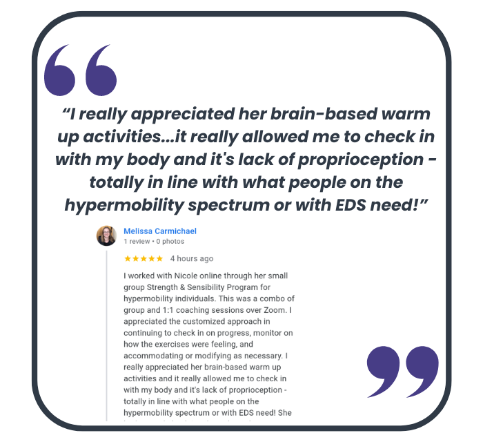 What people are saying about working with Nicole, hypermobility and brain-based movement...